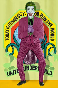 Then came Batman. Jose Ferrer was first choice for The Joker, and Gig Young was second choice. Neither was available, so the third choice booked the job that got him ambushed in airports for the rest of his life by fans begging him to laugh like The Joker. Grateful and gracious, Romero never complained. Bernstein’s book has the executive producer William Dozier claiming he was attracted to the goofy material because comic strips reminded him of the Pop Art Star Roy Lichtenstein. He said he was interested in the “pop art technique of the exaggerated cliché,” which if it’s true is delicious. With straight-faced irony, Lichtenstein had appropriated the look of comic strips, and now TV would ape Lichtenstein’s irony, but with an innocent silliness that denuded it of Lichtenstein’s cool critique of pop culture’s melodrama and emptiness. Irony without irony. High art’s attack on pop had become itself pop: cheerfully corporate and selling scads of merch, as if Campbell’s soup had started designing its cans in homage to Warhol. Susan Sontag’s essay Notes on ‘Camp’ was published two years before Batman debuted in 1966 and she never wrote specifically about the show, but its extreme stylization, the gleeful artificiality, the intentional badness of its self-aware camp, were things she had identified in her essay, and for which America apparently was ready. The UK was ready, too; Batman was a smash on ITV and Romero was presented to Prince Philip.
